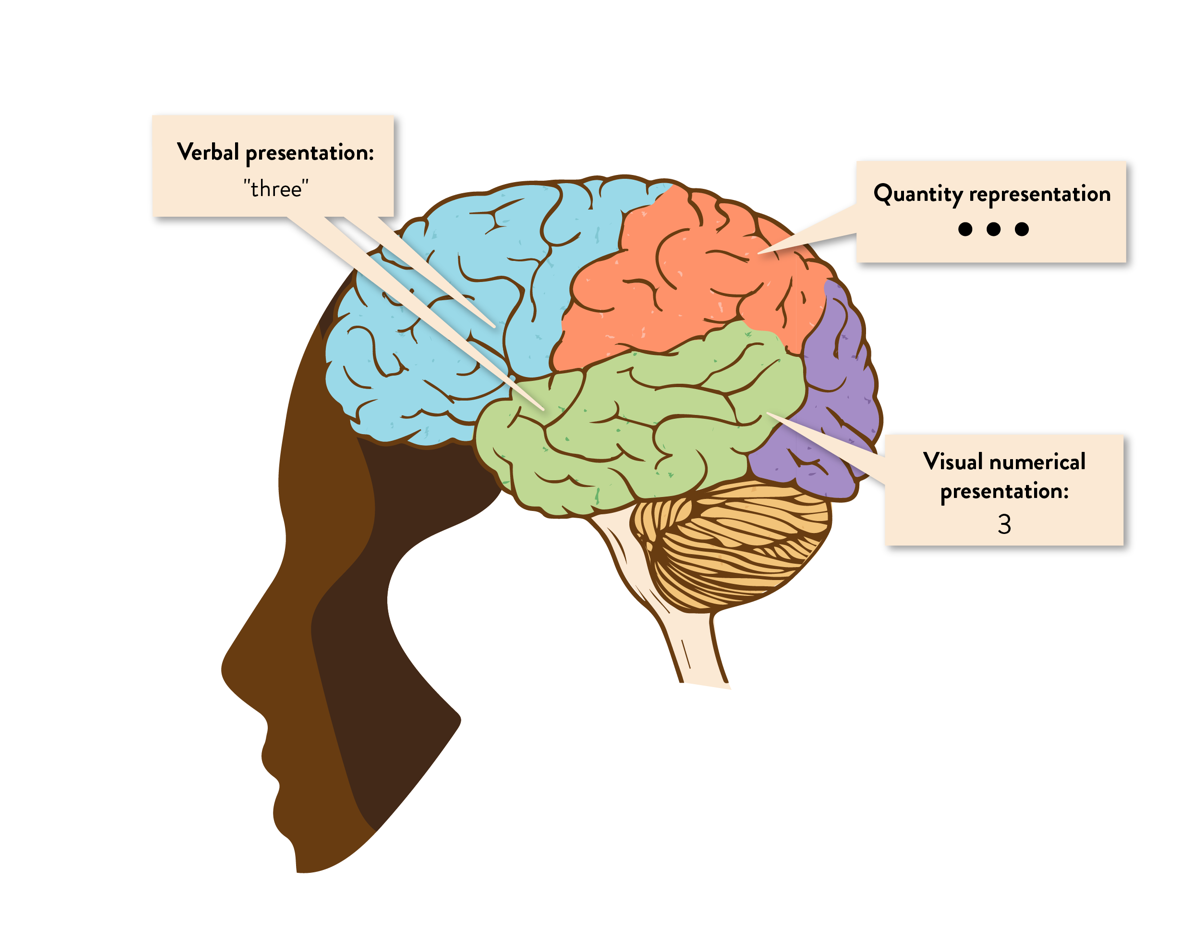 Neurocognitive research shows the importance of the connections between three different number representations, each involving different brain areas (Dehaene (1997)) (Fig. 2).